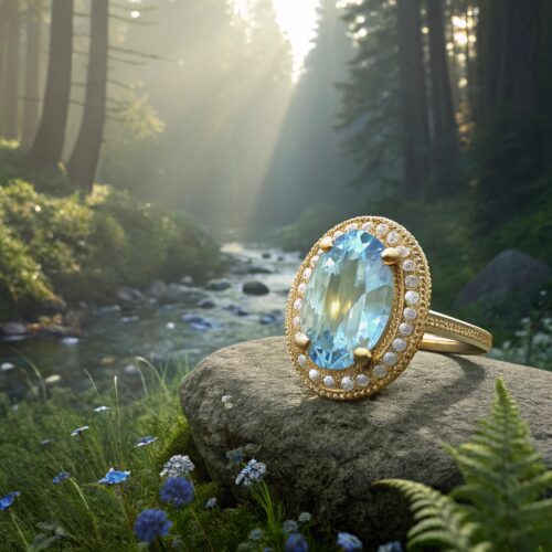 • Anlamı ve Özellikleri: Özgürlük ve cesaretin sembolü olan Akuamarin, ruhu dinginleştirir ve duygusal denge sağlar. İletişimi güçlendirir ve içsel gücü ortaya çıkarır.